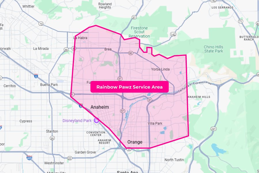 We bring top-tier pet styling right to your driveway. We operate on set days in different zones, including Los Angeles County and Orange County, and travel fees may apply for clients outside our standard service areas ($10–$50 depending on distance).